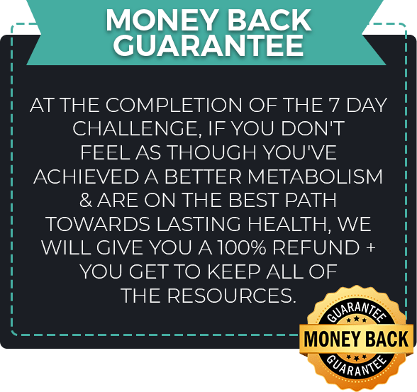 At The Completion Of The 7 Day Challenge, If You Don't Feel As Though You've Achieved A Better Metabolism & Are On The Best Path Towards Lasting Health, We Will Give You A 100% Refund + You Get To Keep All Of The Resources